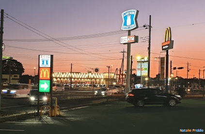 We had named our Japanese in car Sat Nav Sharon (our Google maps lady is called Barbara). Sharon had a bit of a sense of humour and loved sending us along narrow roads between rice fields for no good reason! She avoided any main civilised roads as much as possible, and so the rest of the day disappeared whilst we were truly experiencing rural Japan. When we finally popped back out into civilisation the sun was setting over the urban sprawl.