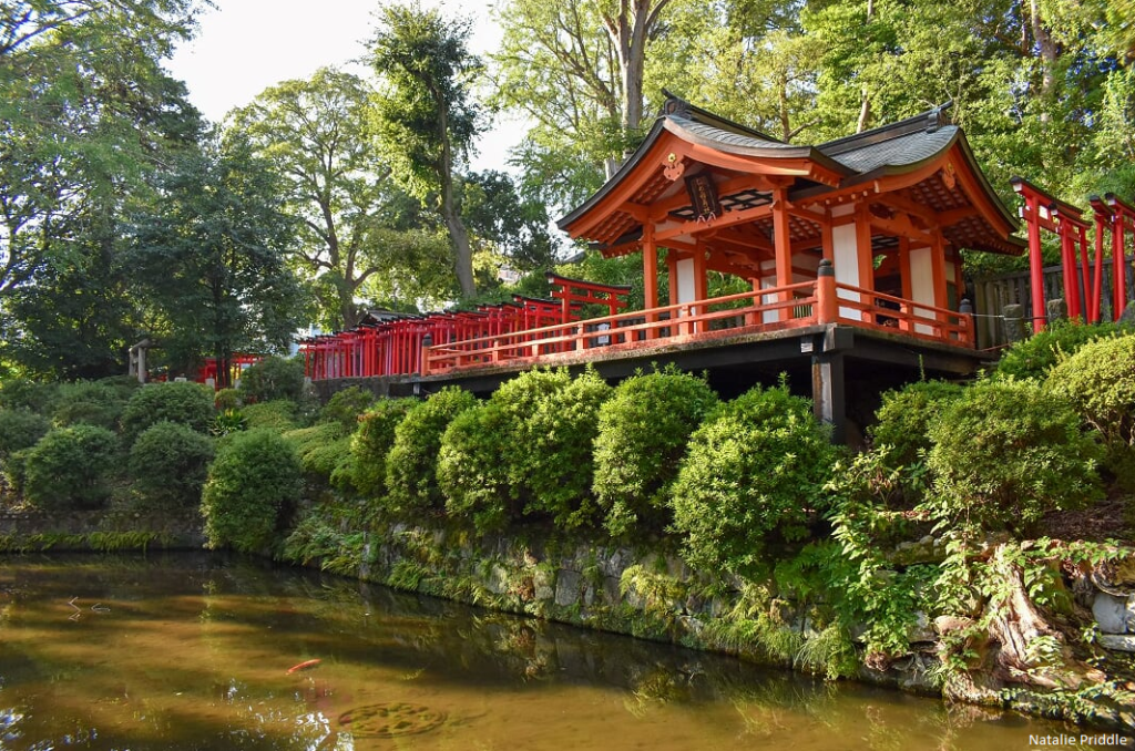 Nezu shrine is said to have a 1900 year history, with many of the shrine buildings standing since the 1700’s, surviving the bombings of WWII. The shrine grounds are ample, at a 8:30am, almost empty too. Nezu shrine is most well known for the azalea festival which happens late April into May. The manicured borders of azalea all burst into pink and purple blooms, and are quite stunning. In autumn there were no blooms to see, but the shrine grounds were still bright green and peaceful.