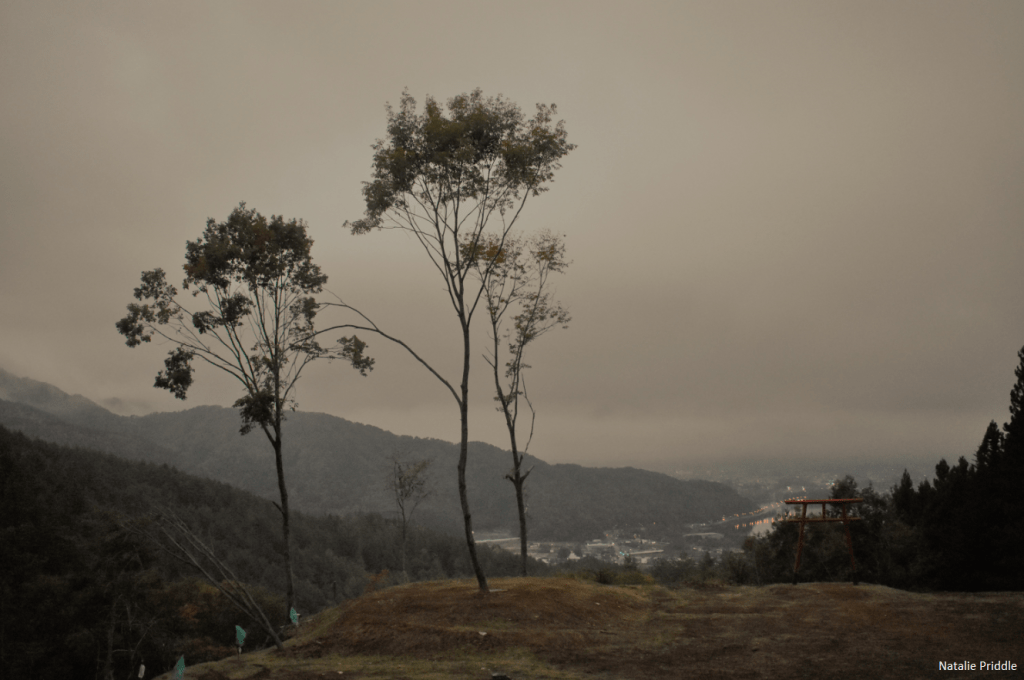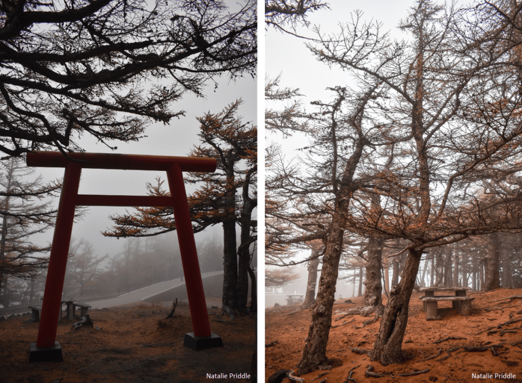 We had clear blue skies on our way up the 20km road to the Suburu Line 5th station, the most popular of the 5th stations. As soon as we got out at the 5th station, wearing our ski coats, the clouds blew in and it was a white out, you could barely see anything. There was little snow on Fuji the day we went up, the 9th of November 2019 but the trails had been roped off as the climbing season was over. We did a spot of shopping, managing to find our favourite sakura daifuku which we had purchased in 2017! It was very beautiful wandering through the mist, especially in the eerie forest with the craggy trees.