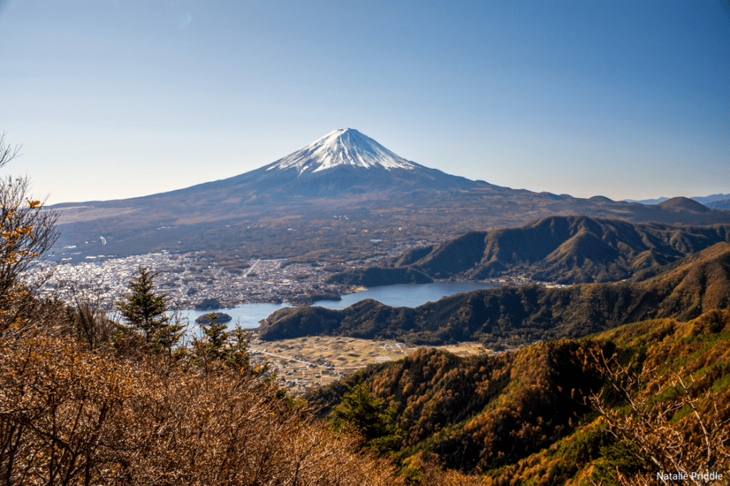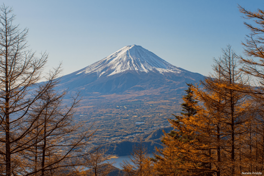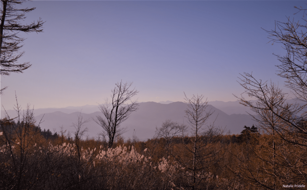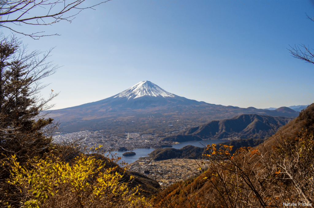As the weather we spectacular we wanted to try another hike that day, so we quickly stopped off at K’s house and got into our hiking gear. Our aim was Mount Kurodake, the tallest peak on the ridge which lines the northern edge of Kawaguchiko, and commands amazing views of the city, lake and Fuji. There are a number of ways to get up to Kurodake, from Oishi Park, from Tenka Chaya, or from the end of a very wriggly road on the other side of the peak. It took almost 50 minutes to drive under 10 miles, but the last couple of miles were on single track mountain roads, which were slightly dicey! We arrived at the car park for the start of the hike, but before we could set off a couple of hikers came down and shared some photos that they had just taken, the view looked spectacular! On the hike there are 4 view points for Mount Fuji, each clearly signposted off of the trail, and all beautiful.