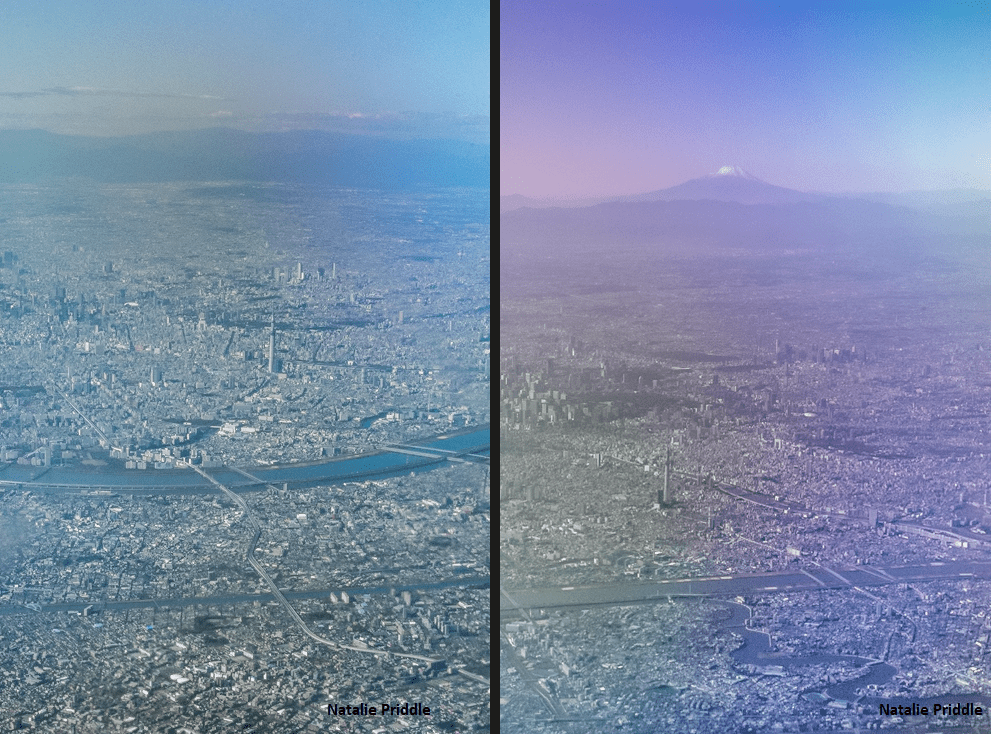 One little blessing was that we saw Mount Fuji from the plane, sit on the left hand side if taking off from Haneda and heading east. I forgot to take off my polarising lens cap so the photos are a little funky!