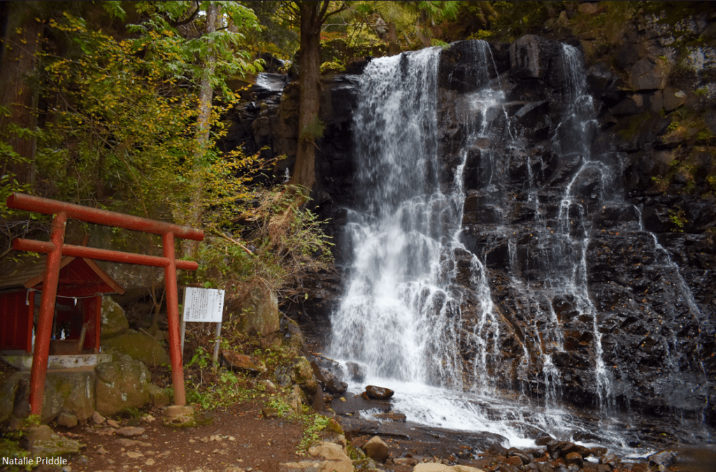 Hananoshirotaki shrine is a small shrine further up the mountain from Asama shrine and from the torii. The shrine is set against a beautiful waterfall, which freezes solid during winter!