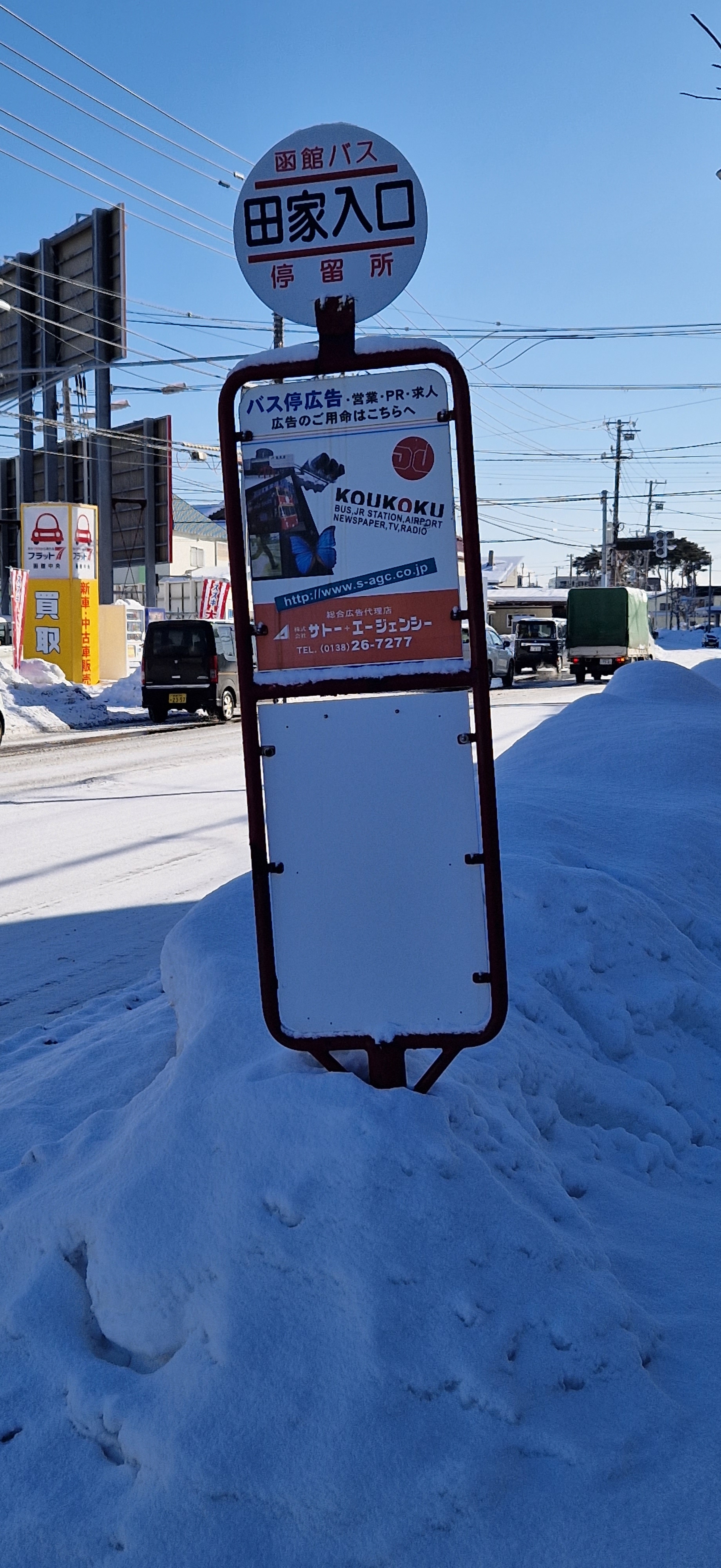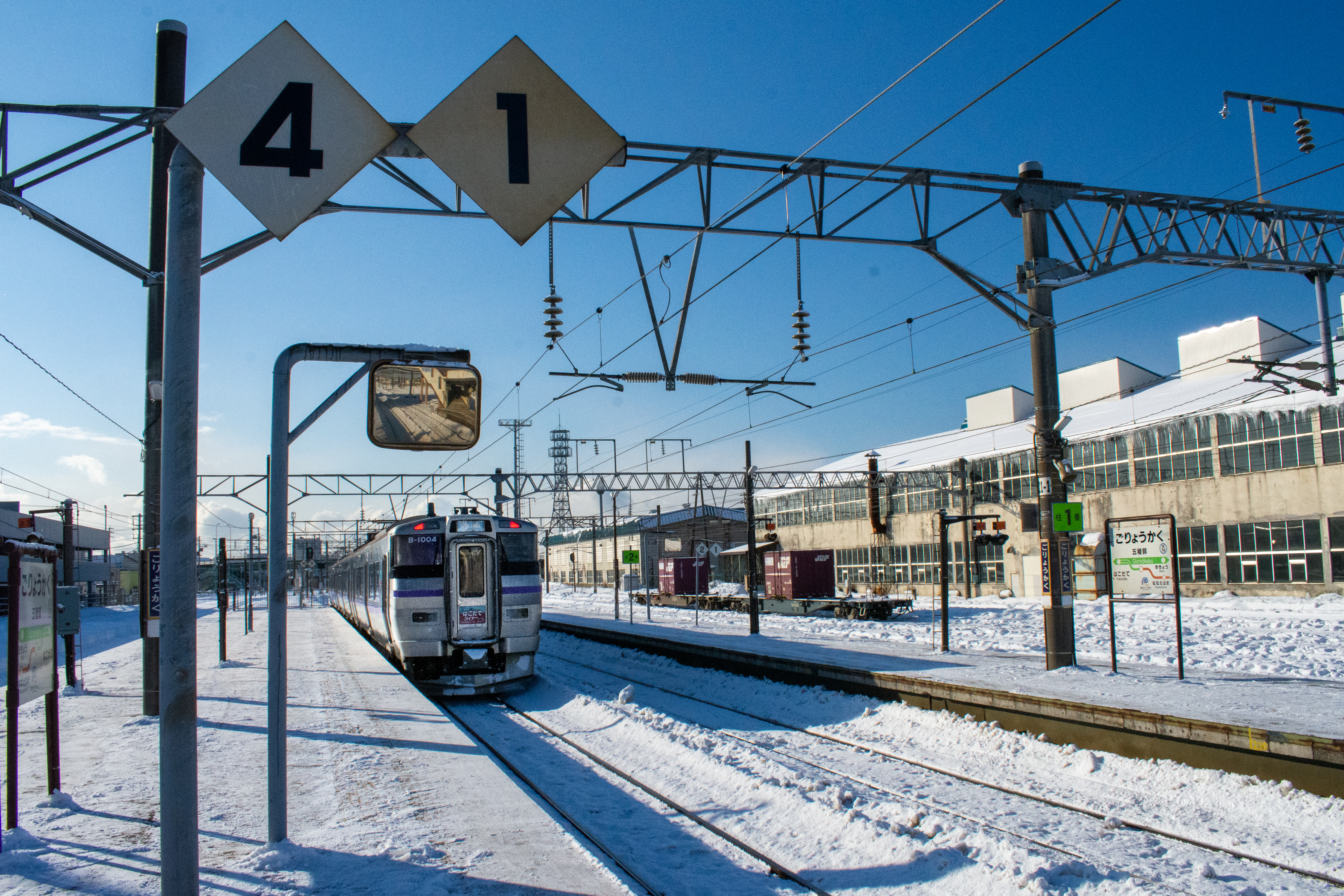 Shin-Hakodate-Hokuto station was a little more lively in the morning rush hour than it was at night, which meant there were about five other people at the station. We took a local train for 20 minutes towards Hakodate and got off at Goryokaku Station which is a 30-minute walk away from the fort. It was a lovely walk through mainly residential areas, the snow meant everyday objects, such as vending machines and bus stops, looked super cute buried in the snow.