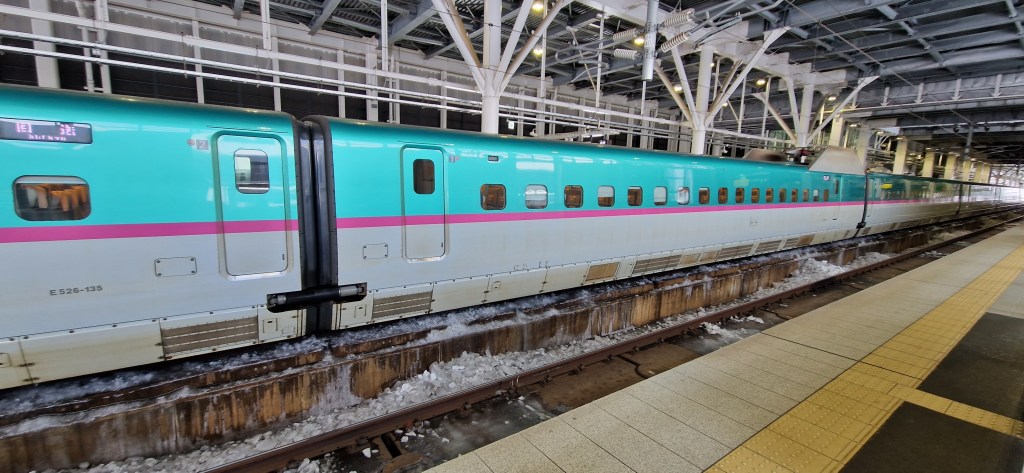 We got back to the hotel, so handy to be able to extend our check out, got all packed, and headed down to the Shinkansen station. I was very excited to take the Hokkaido Shinkansen under the Tsugaru Strait. As this is the terminus on the Hokkaido Shinkansen we were the only people in our carriage which was lovely. Snacks in hand we got settled and started our 50-minute journey to Shin-Aomori station.