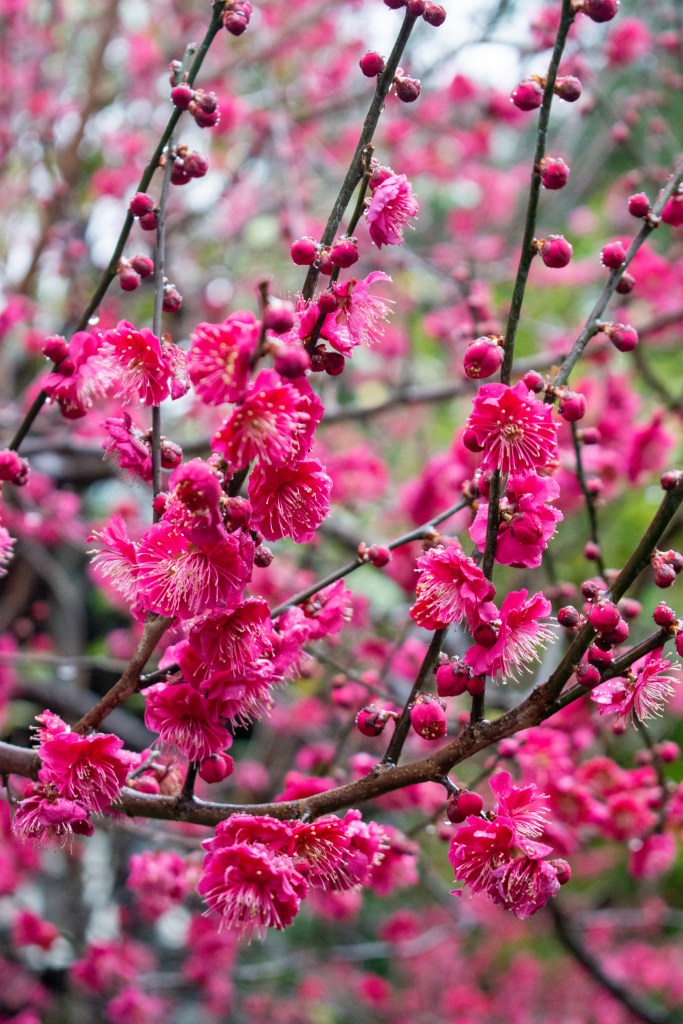 Our destination was Yushima Tenjin Shrine, I thought I had seen it all when it came to Tokyo shrines, but this was a real surprise. The shrine is situated on a hill which is absolutely covered in plum trees. Sadly, we were a little early for the plums in full bloom, and the cold, wet weather hadn’t helped the bloom progress. It was still lovely to walk around the shrine, and the one benefit of the weather was that this usually popular shrine was rather empty.