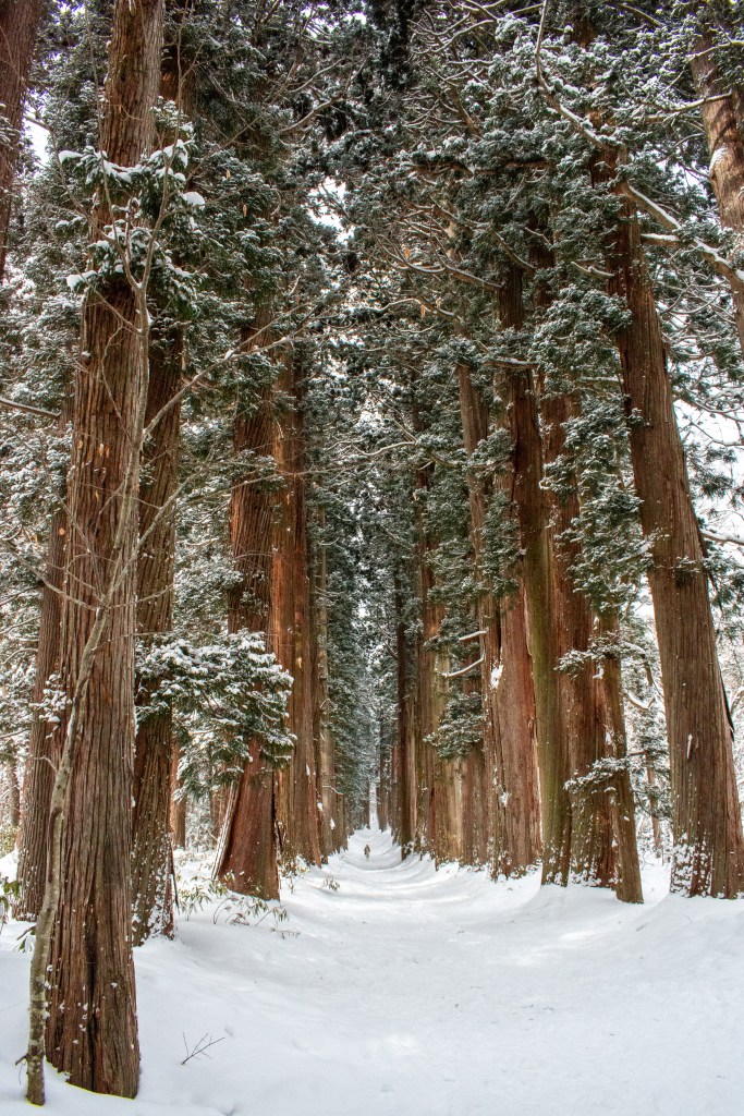 The back streets of Nagano City had some lovely old-looking buildings, with giant paper lanterns out front, and I enjoyed being in the snow again after the hot weather in Tokyo. Our reason for staying so far north in Nagano was to visit a stunning shrine in the mountains, Togakushi Shrine, which is roughly an hour’s drive from the city. This was our first time trying the new rental car in the snow, and although we had winter tyres the Tokyo branch didn’t offer 4-wheel drive options. The drive was absolutely fine until we got halfway up the mountain on a series of switchbacks and the car started skidding and lost power. It was a terrifying drive to the shrine, and at times we almost completely stopped due to loss of power. Instead of helping, we were being overtaken on snowy mountain roads, I was not happy! So my number one recommendation is to *always* get the 4-wheel drive and winter tyres if you are planning to drive on any snow!