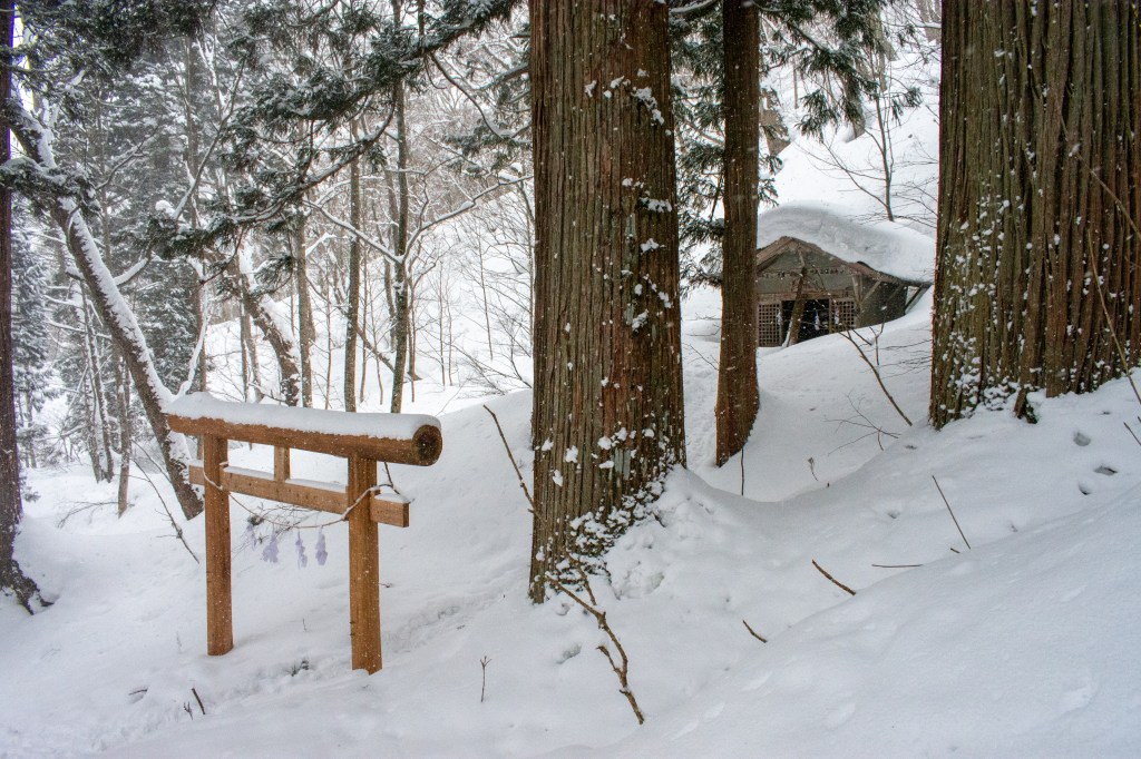 Thankful to not be dead we suited up for a very snowy hike, for some inexplicable reason we decided to leave our crampons in the car… we will regret this later! Snow boots, gators and waterproofs on we headed off from the car park and found ourselves at a stunning wooden torii leading into a winter wonderland. Togakushi Shrine is a rather famous shrine thanks to the mythology behind it. It is said that the Sun Goddess hid in a cave after her brother misbehaved, which caused the world to be in darkness.