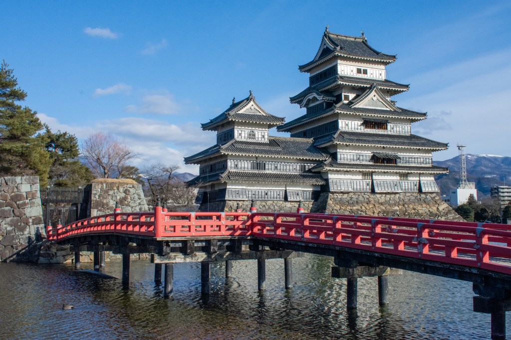 We had an 174-mile journey to get to Takayama, and so decided to stop off in one of the most famous towns in Nagano, Matsumoto, home of the stunning Matsumoto castle. This isn’t our first time visiting Matsumoto-jo, we went back in 2017, but the winter blue sky and the bright sunshine made the black castle walls seem so bright.