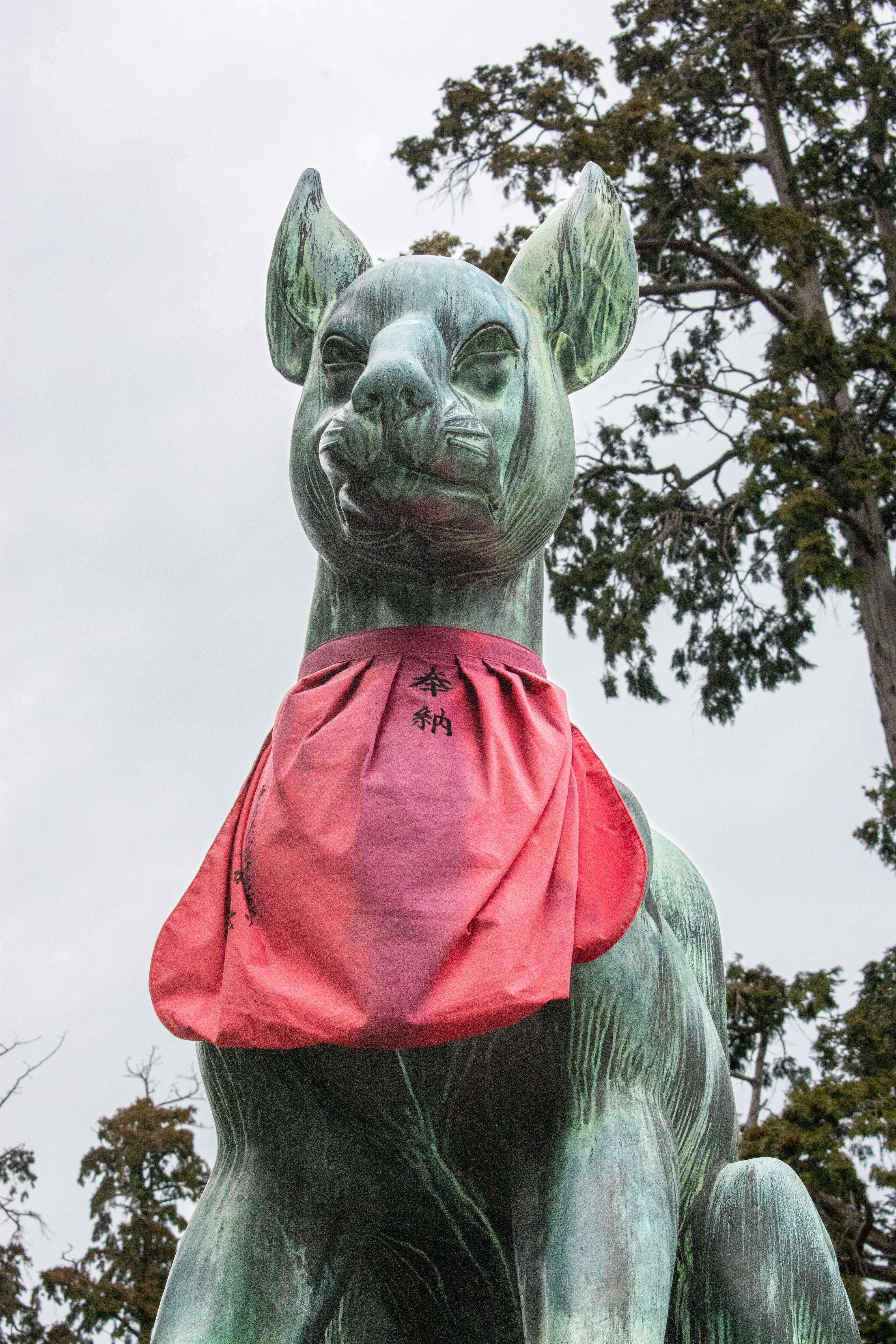 I have visited a few Inari shrines before, usually dedicated to the goddess Inari, who has foxes as messengers. Unlike other shrines, such as in Kyoto, the number of fox statues here is almost uncountable! As you walk through the complex you come across a number of large fox statues, all with quite intriguing facial expressions.