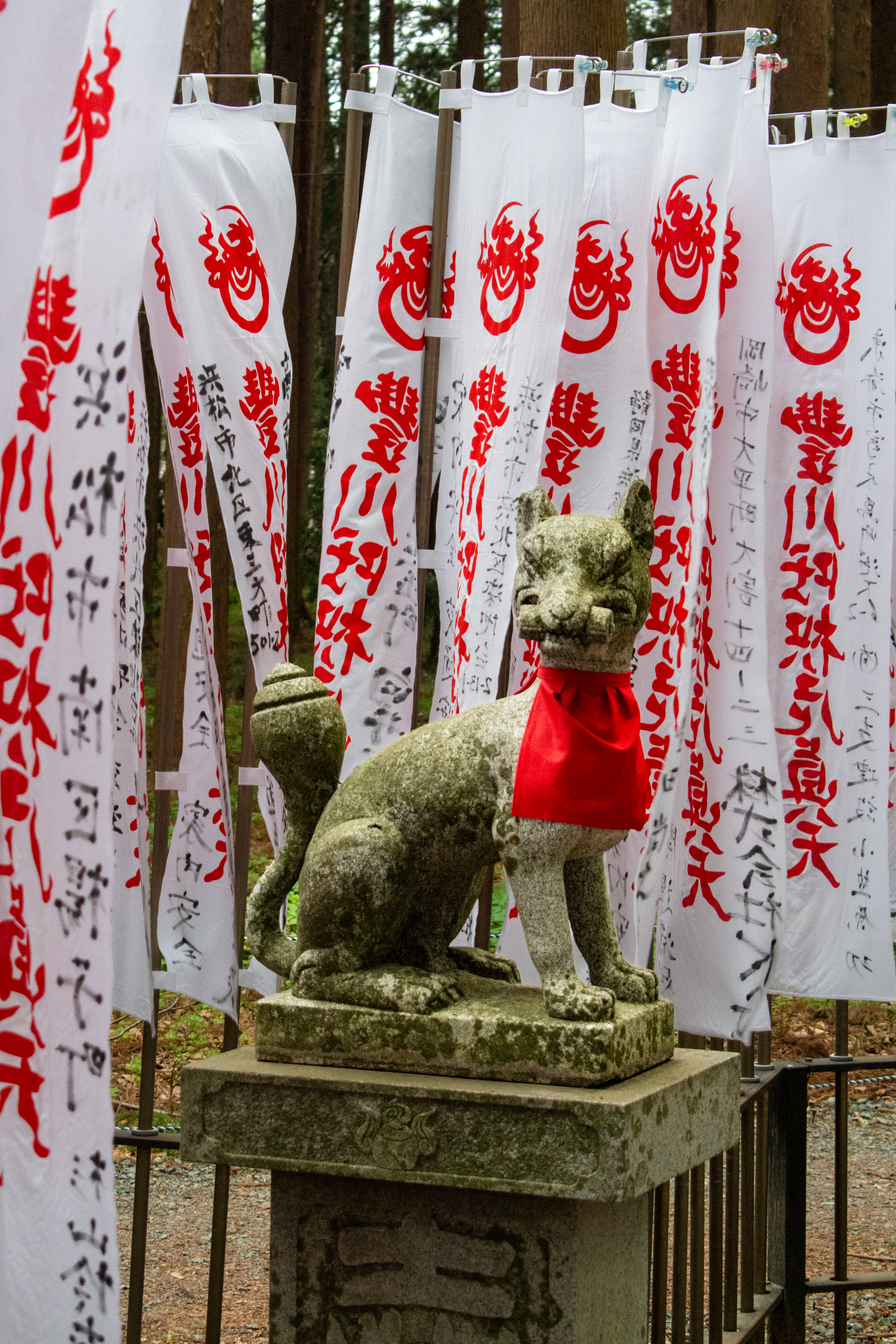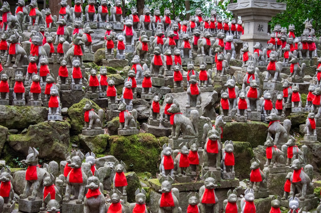 The hill of foxes itself is almost hard to look at with the sea of red bibs spreading out before you. There are hundreds of fox statues here, from the obviously fresh and new ones, to moss-covered foxes who have stood for decades. If you visit in May, August, or November you may catch a festival in action as well, which must be amazing.