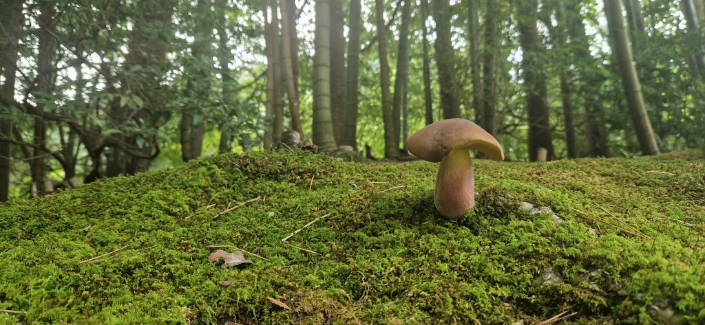 After our fun on the lake, we drove back to our lovely house for some lunch, and relaxed while the sky was cloudy. After about two hours of rest, we decided to get out of the house and revisit the Kubota Itchiku Art Museum as it was only a 15-minute walk away. Kubota Itchiku was an incredibly talented kimono designer, who brought a long-forgotten tie-dye kimono technique back from the dead. In his life, he produced some of the most stunning and intricate kimono series, which are more works of art than clothes. No photos are allowed of the kimono, so you’ll really have to visit to get an idea of them. The grounds are beautiful, and I found a tiny mushroom friend!