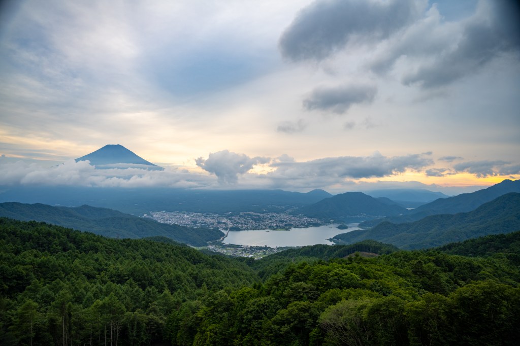 We were able to park close to the spot and walked down to the fence free of forest to get the view. There was one other photographer there, in a camping chair with his camera all setup, he was a bit grumpy to be sharing the space! It was a mixed bag, we got some lovely sunset colours, and the view of the lake and mountains were beautiful, but Fuji wasn’t totally clear.