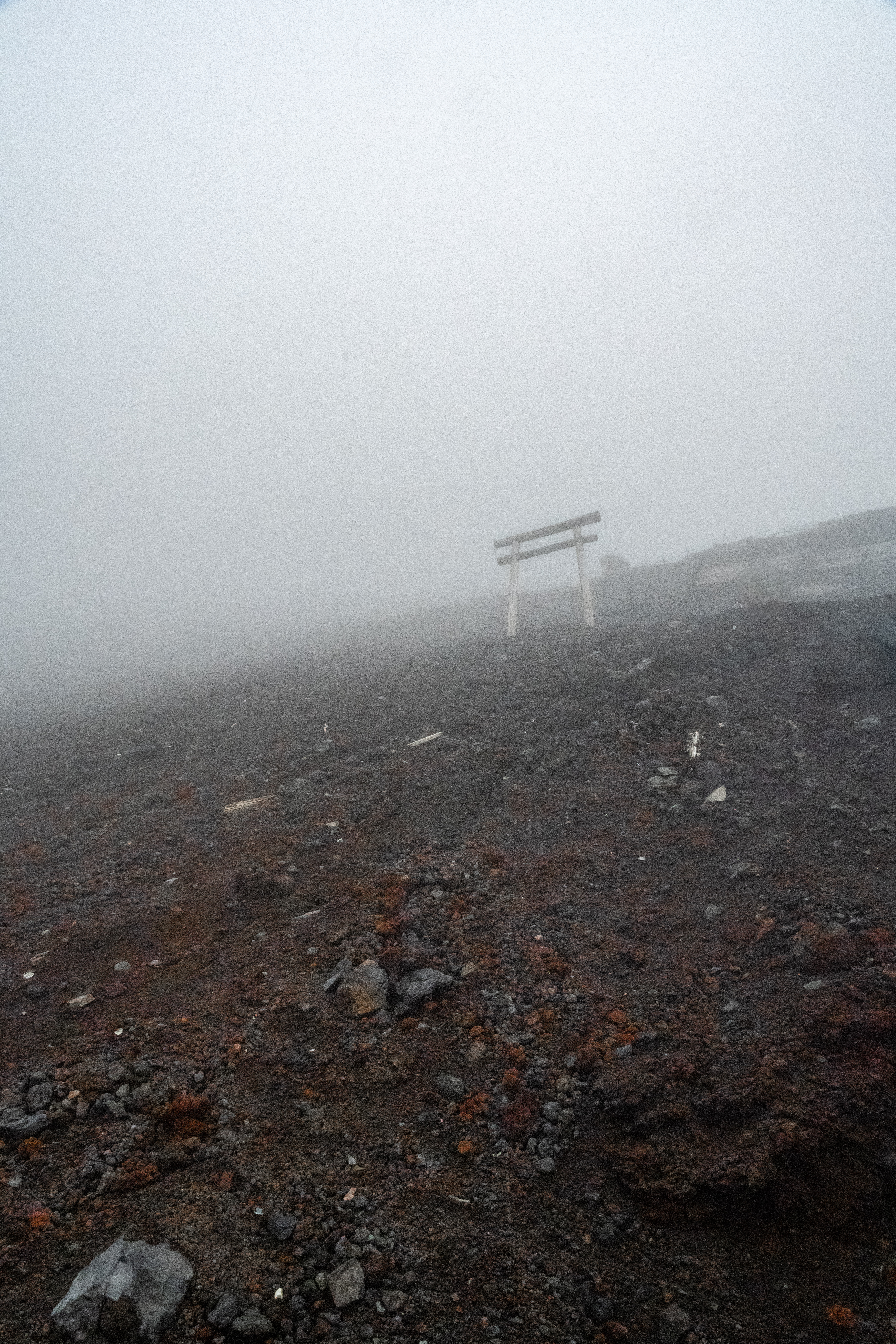 Either thanks to the weather, or the unpopularity of the trail, we saw very few people on our way up the Subashiri trail. From the 8th station the Subashiri trail merges with the most popular hiking trails, the Yoshida trail. This is where it can become quite busy, more of a queue than a hike. It must have been thanks to the weather that the trail was still practically empty, even once we were joined with the Yoshida trail. Somewhere around the (multiple) 8th stations, the clouds rolled in again, and the temperature dropped. There is a staggering temperature difference between the base of Fuji and the summit, with summer temperatures around the Fuji lakes being up to 35°C, the summit is often below freezing, and was around -5°C the day we climbed. It was at this time that we had an outfit change, putting on thermal fleece layers underneath our waterproofs as the wind chill made the hike even colder.