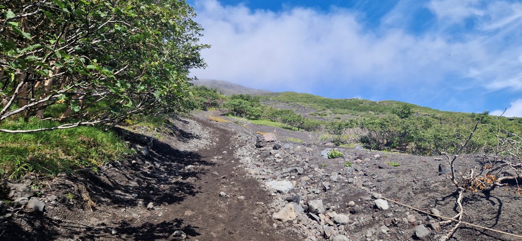 You’d think that once our symptoms improved the rest of the descent would be joyful, but no, this is where it gets worse haha. I had, of course, read about the sand run which is part of the descent on the Subashiri trail, they say you can get down several kilometers in less than an hour here if you slide/run your way down. Not wanting to break all of my bones, running was not an option (also thanks to asthmatic lungs) and it seemed most people were in agreement as we joined a long cluster of people trying not to end up on their bums.