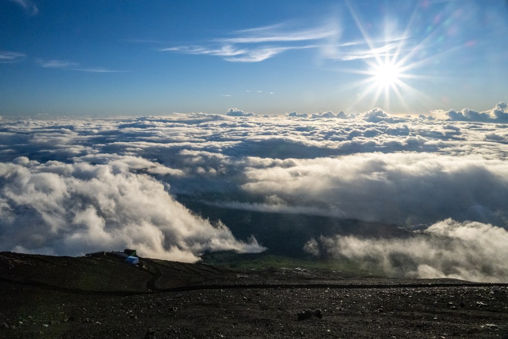 The only thing I was truly looking forward to, other than being able to climb to the summit, was to see the sunrise. Sadly, it was an overcast day, so there was no way to see the sun coming up over the horizon, although eventually we were left with a sea of clouds and the sun did peep through. Although we were feeling slightly better from the fresh air, we needed to get down the mountain as soon as possible to remedy our symptoms, so we had to forego the caldera walk and get down.