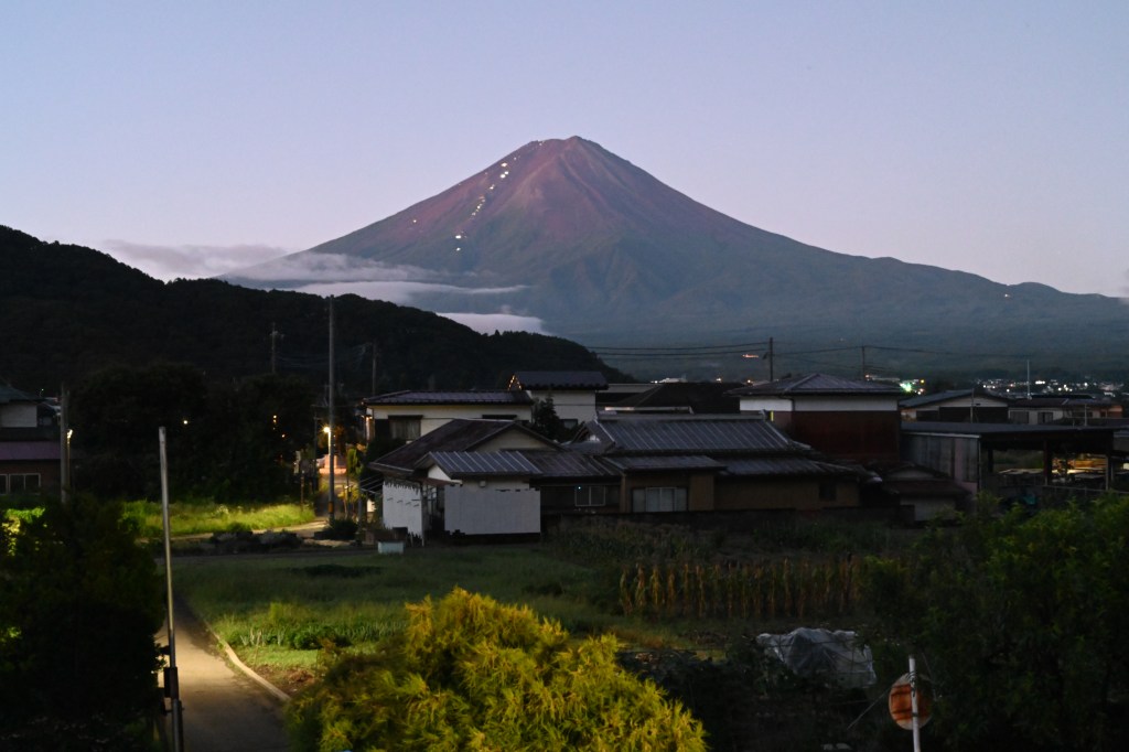 The rest of the day was a write-off, we dozed, visited the shops, and rested a bit more. At sunset Mount Fuji suddenly was visible through the clouds, and we could see the lights of the huts before they turned off for the night, grateful to be in our airconditioned home, with no one snoring!