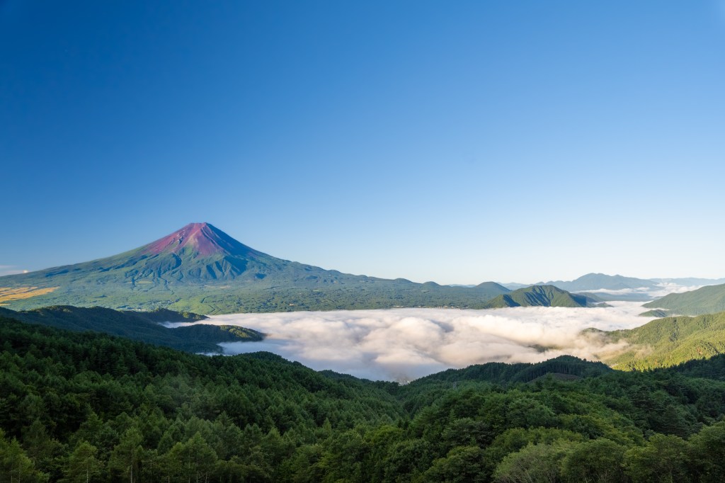 Once we got to where we had parked the day before, there were already a number of cars there. We parked up, got the camera and rushed to the view point. From our higher vantage point you can see the sea of clouds that has covered the entirety of Kawaguchiko.