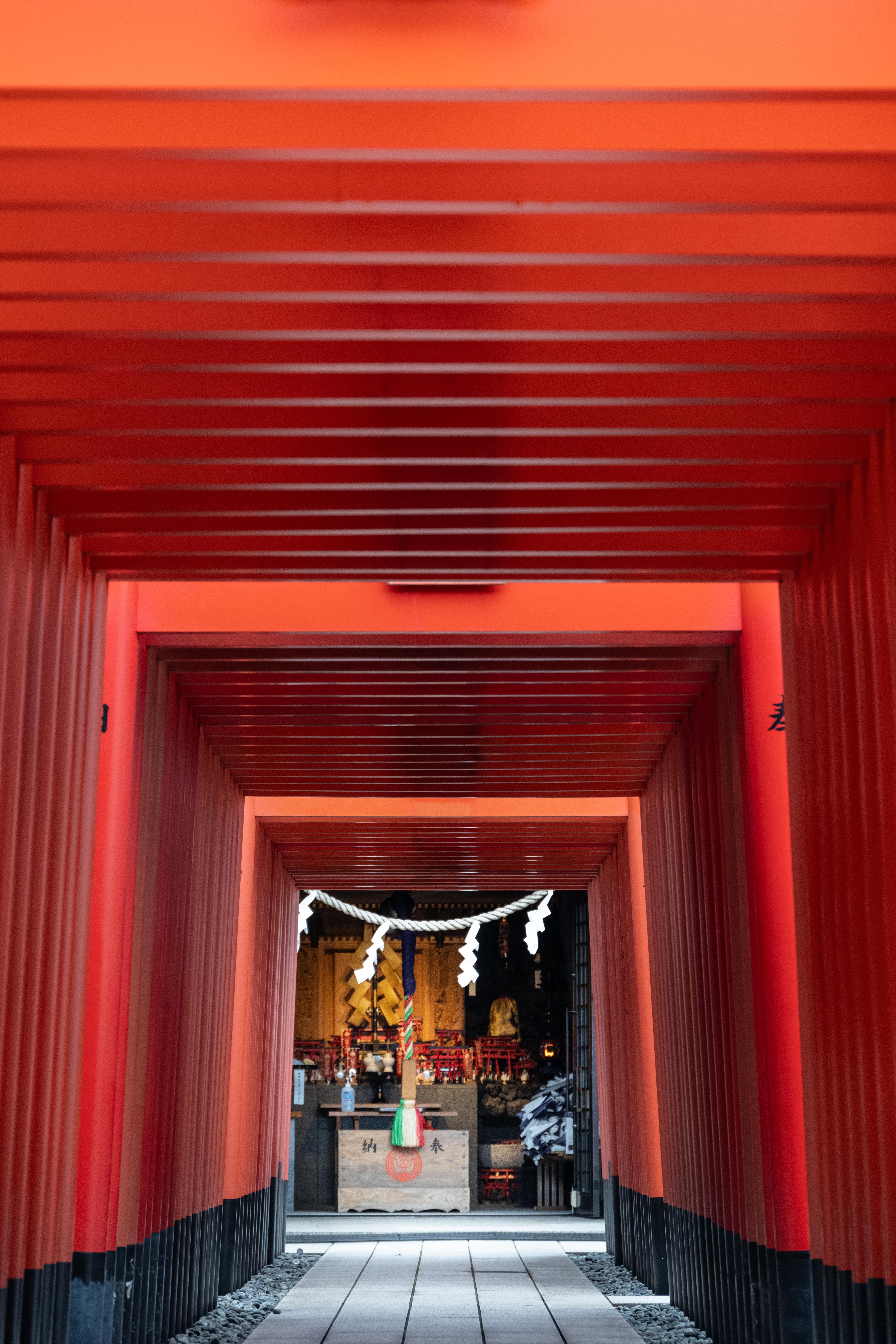 Our next stop was the Anamori Inari Shrine, which we have visited in our previous trips. It is an inari shrine, just like the famous torii shrine in Kyoto, with long lines on torii through the shrine. The shrine was moved down from the water front to it’s new location, there are a couple of nice shrine buildings, and a very interesting tower made of Mount Fuji lava rock that you can climb and get an over view of the area.