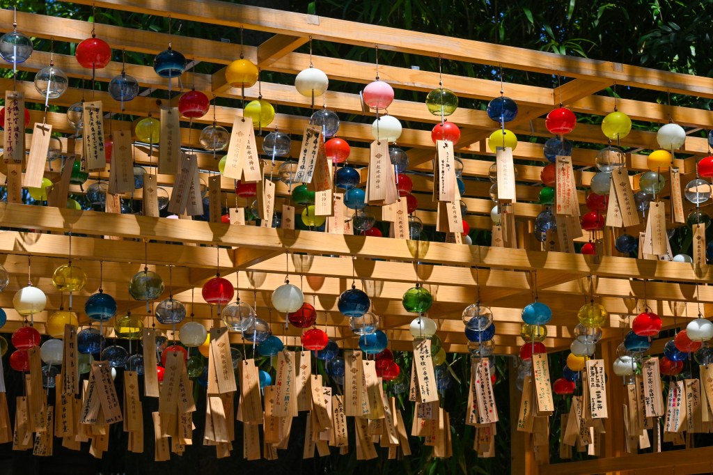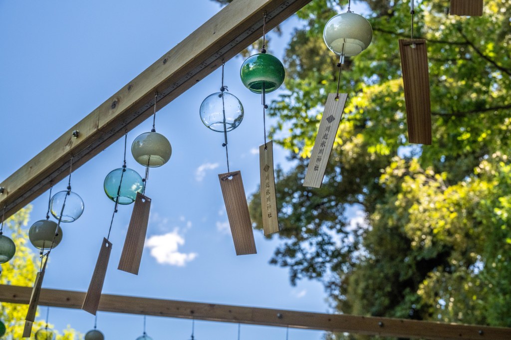 It took about an hour to get the car, so we were quite delayed getting on the road, we had over 100 miles to drive that day, and it was sweltering. Our first destination was in Kawagoe, a “little Kyoto” in Saitama north of Tokyo. Rather than just visiting the old town, we specifically wanted to visit the Kawagoe Enmusubi Furin Festival. I was a bit concerned that the furin would have been packed away for the typhoon, or that they may have been damaged. When we got to Kawagoe you would never know the day before had been so stormy, it was the hottest, stillest day I had ever seen. In was over 40°C in the sun, absolutely sweltering. Even with a sunshade and fan it was just so incredibly hot, but the beautiful blue sky made the furin look stunning.