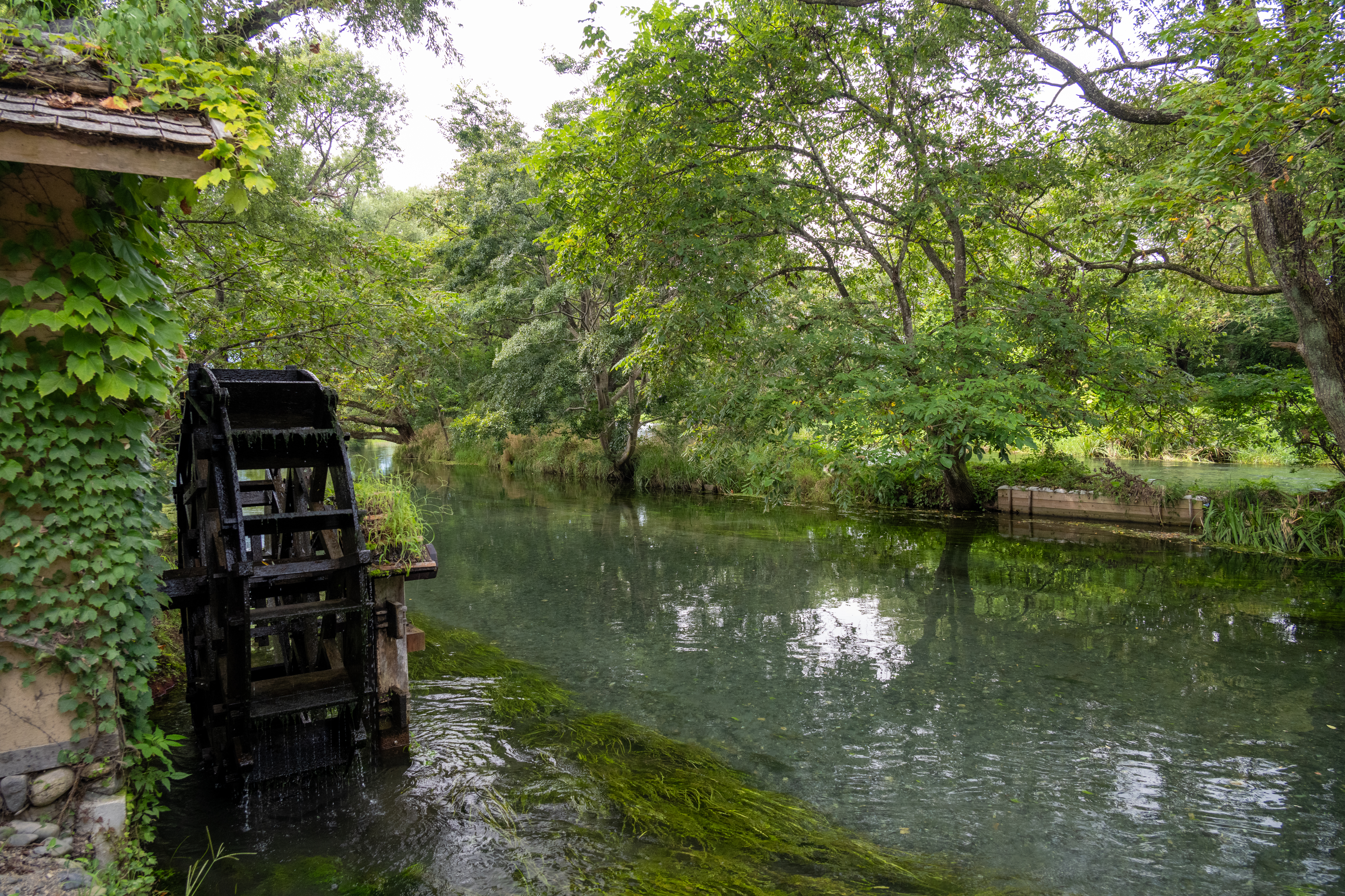 There are several routes between the two places, but none direct thanks to the mountainous topography of central Japan. We picked the northern route, which went up to Nagano city and then back down south on the other side of the mountain range. Our first stop of the day was Azumino in Nagano prefecture, home to many museums, illustrators, wasabi, and a gateway to the Alps. We decided to visit Daio Wasabi Farm and learn all about how wasabi is farmed. It was another boiling hot day now we were down in the valley, so a walk around a river sounded ideal.