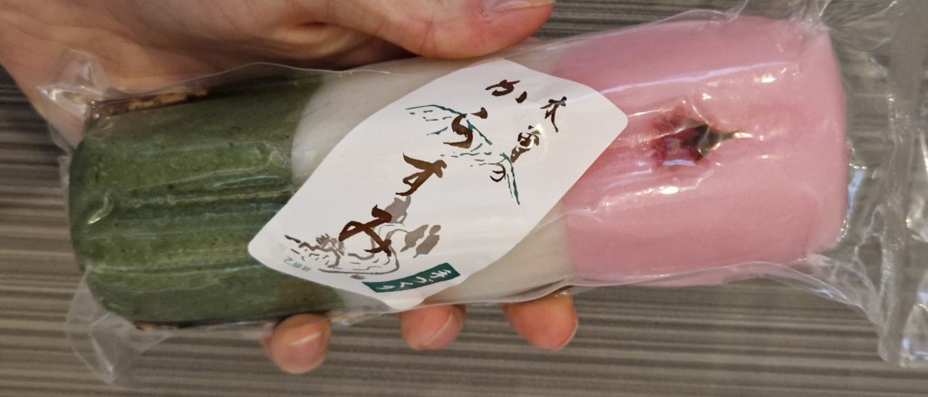 On our way back to our accommodation we stopped at a michi no eki and explored the river across from it the Shizumo Forest – River and Green Park. It was absolutely boiling hot, but enjoyable to explore the riverside. We also picked up some local sweets at the michi no eki – a type of three flavoured mochi used on Hina Matsur – it was delicious, I would certainly recommend picking some up if you are in the area.